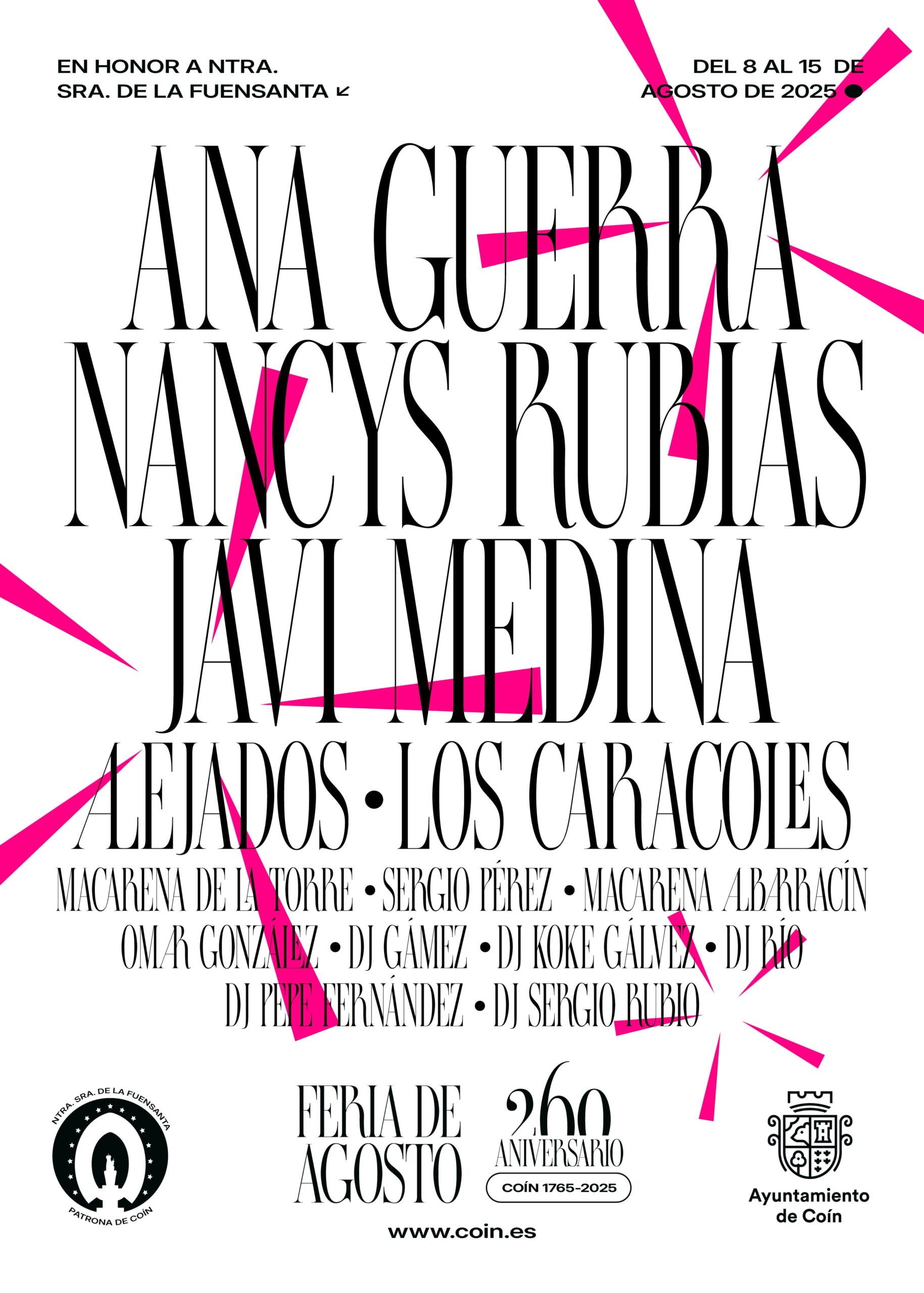 Ana Guerra, Nancys Rubias y Javi Medina encabezan la programación de la Feria de Coín 2025