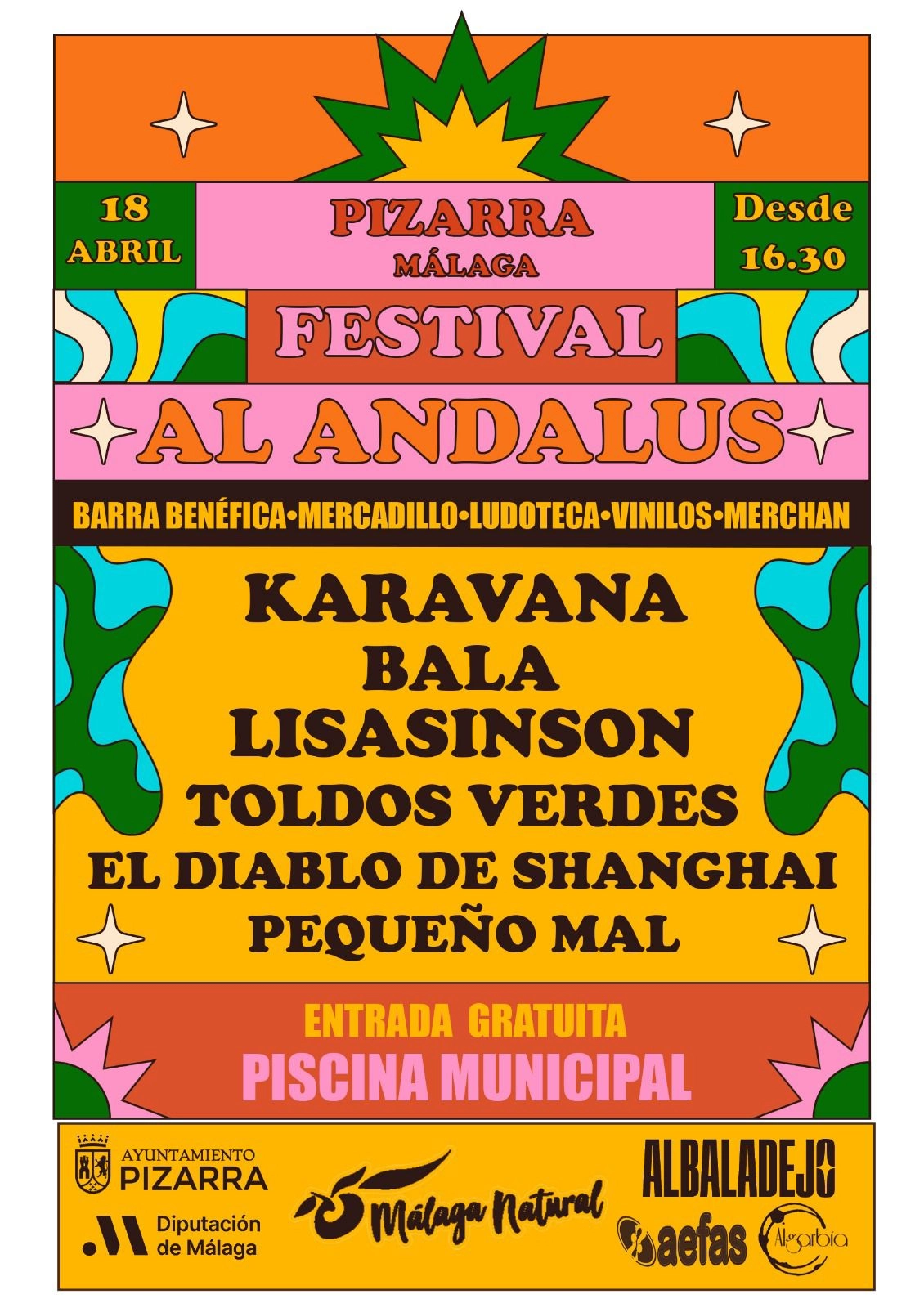 El Festival Al Ándalus de Pizarra celebrará su decimoquinta edición el próximo sábado 18 de abril, consolidado como una de las citas culturales más destacadas para los amantes de la música independiente en la provincia. El evento, organizado por el Ayuntamiento, tendrá lugar en la Piscina Municipal a partir de las 16:30 con entrada gratuita.